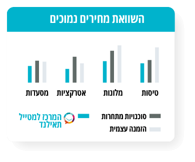 שתדעו, ההזמנה דרכנו זולה יותר מהזמנה עצמאית באינטרנט כך שלצד שירות ויעוץ בשפה העברית עם מידע עדכני מהשטח, תקבלו את המחיר הכי טוב שיש. אנחנו חתומים על הסכמים בלעדיים עם מלונות בתאילנד. ממש כמו ועד גדול שמקבל את המחירים הטובים ביותר על כמות הזמנות גדולה. ההסכמים אוסרים עלינו להציג את המחיר באופן פומבי באתר אבל נשמח לשלוח לכם את ההצעה הזולה ביותר אם תיצרו איתנו קשר, איך? הכי פשוט וקל... בווצאפ, בטלפון, במייל או באתר - איפה שתבחרו אנחנו כאן. תנסו ותראו בעצמכם!